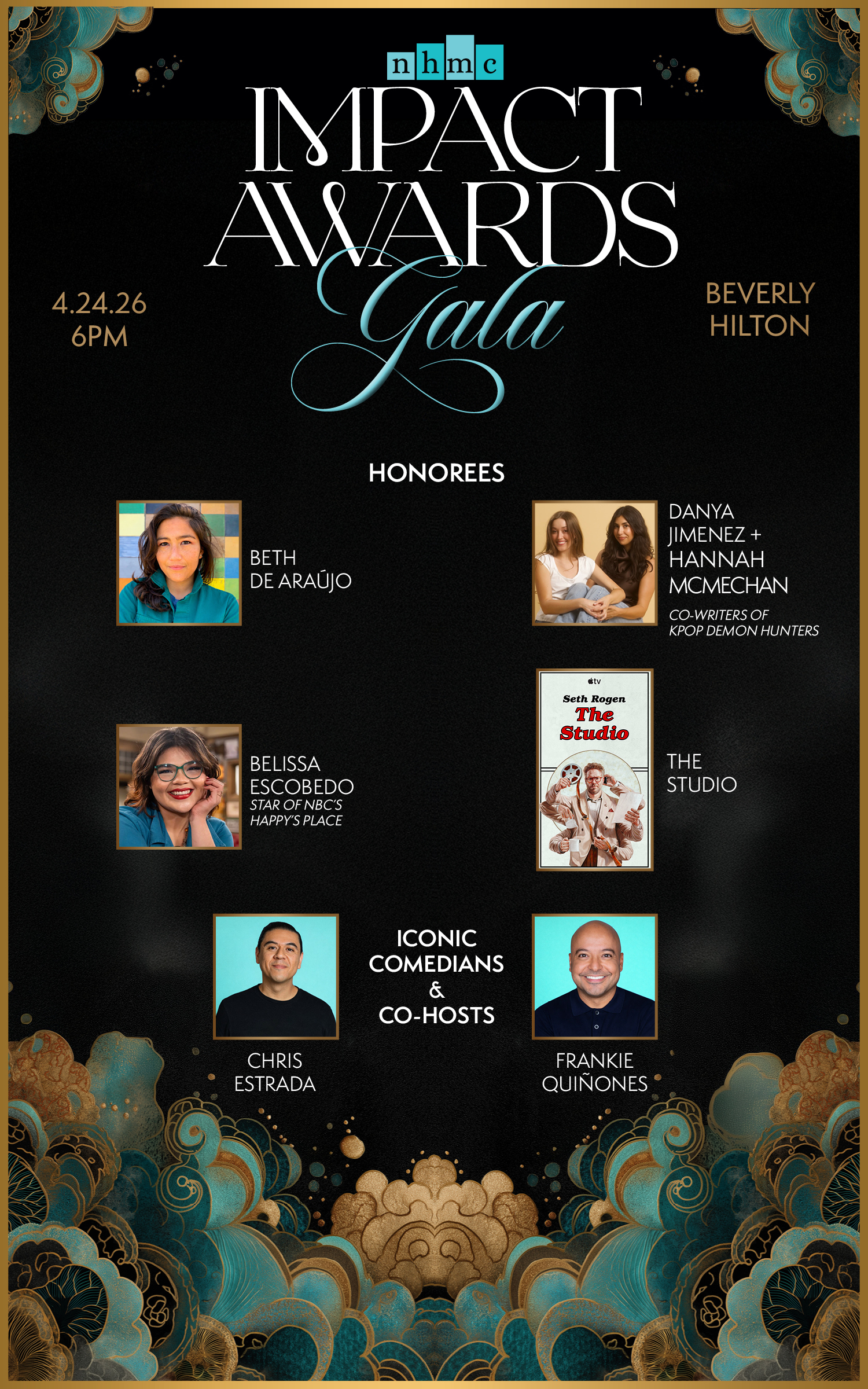 The National Hispanic Media Coalition (NHMC) announced some of the honorees for their annual Impact Awards Gala taking place on Friday, April 24, 2026, at The Beverly Hilton in Beverly Hills. Apple TV’s hit comedy The Studio will be honored with the Beyond the Lens Impact Award, Belissa Escobedo will be recognized with the Outstanding Actress Performance in a Series Award for NBC’s Happy’s Place, Beth de Araújo is being honored with the Visionary Impact Award for her feature film JOSEPHINE, and Netflix’s KPop Demon Hunters co-writers, Danya Jimenez and Hannah McMechan will receive the Storytelling Impact Award. Hosted by Comedians Chris Estrada and Frankie Quiñones the annual celebration honors the incredible contributions of individuals creating a more inclusive society.