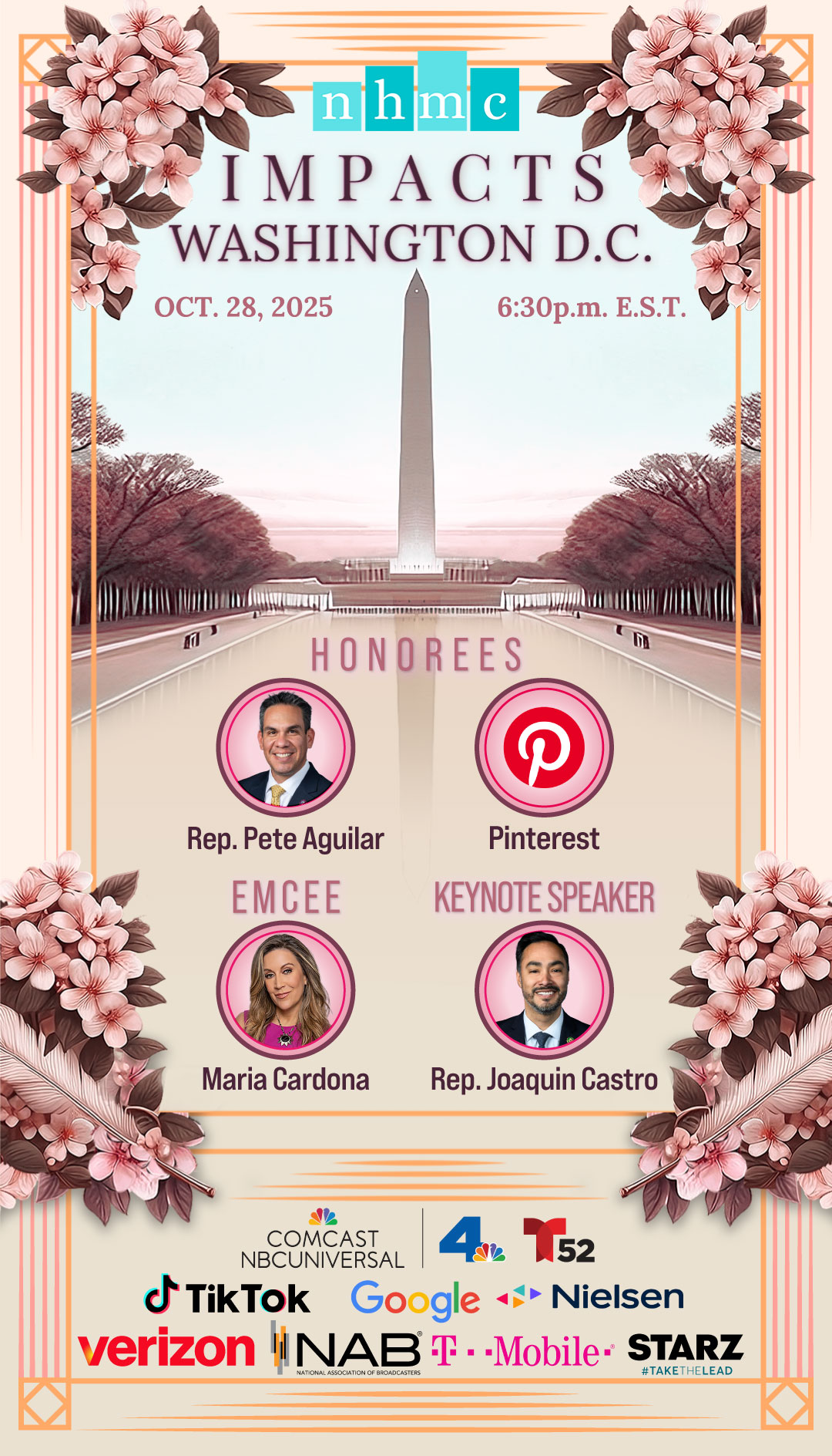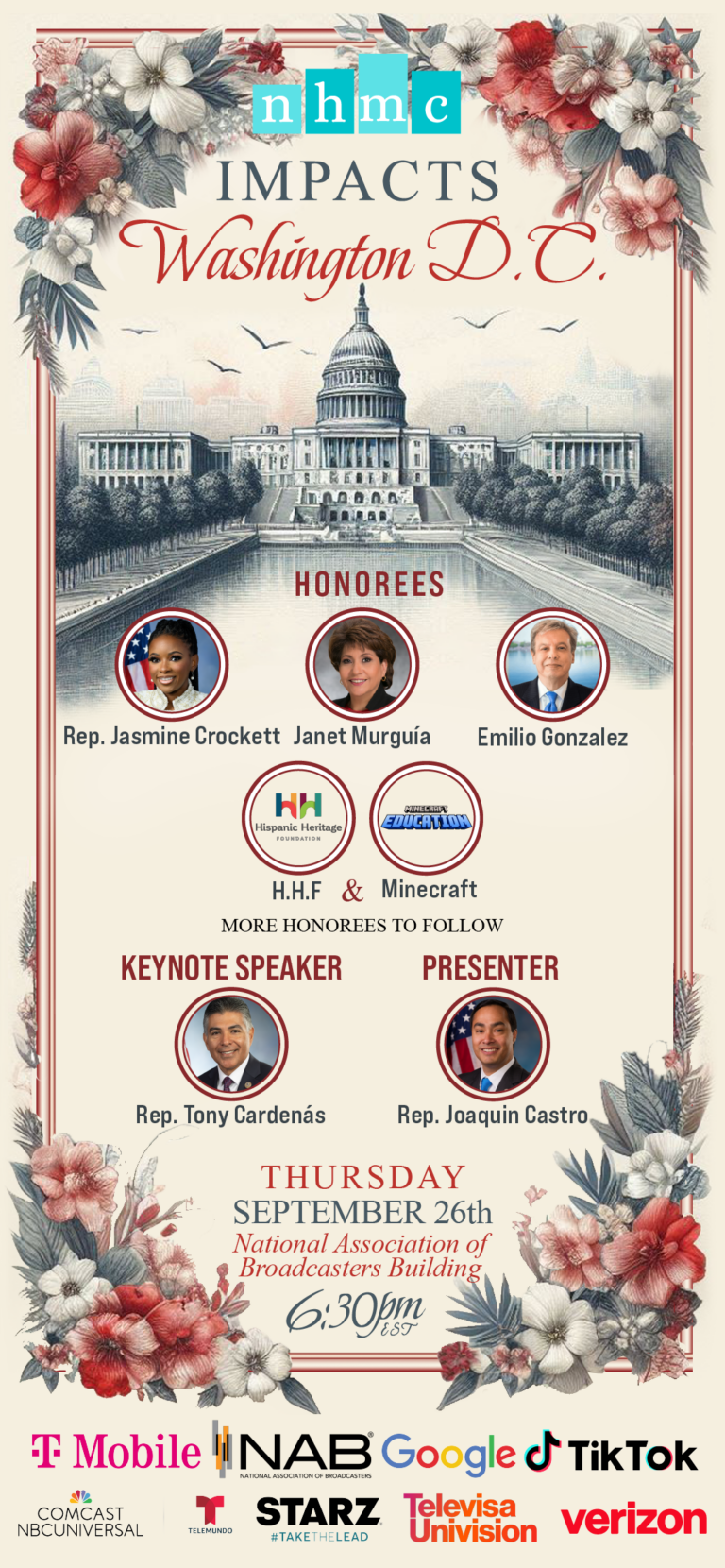 NHMC applauds its sponsors for the partnership and commitment to the NHMC Impacts Washington, D.C. reception. Sponsors include Google, Verizon, Comcast, T-Mobile, TikTok, Starz, Nielsen, and the National Association of Broadcasters.