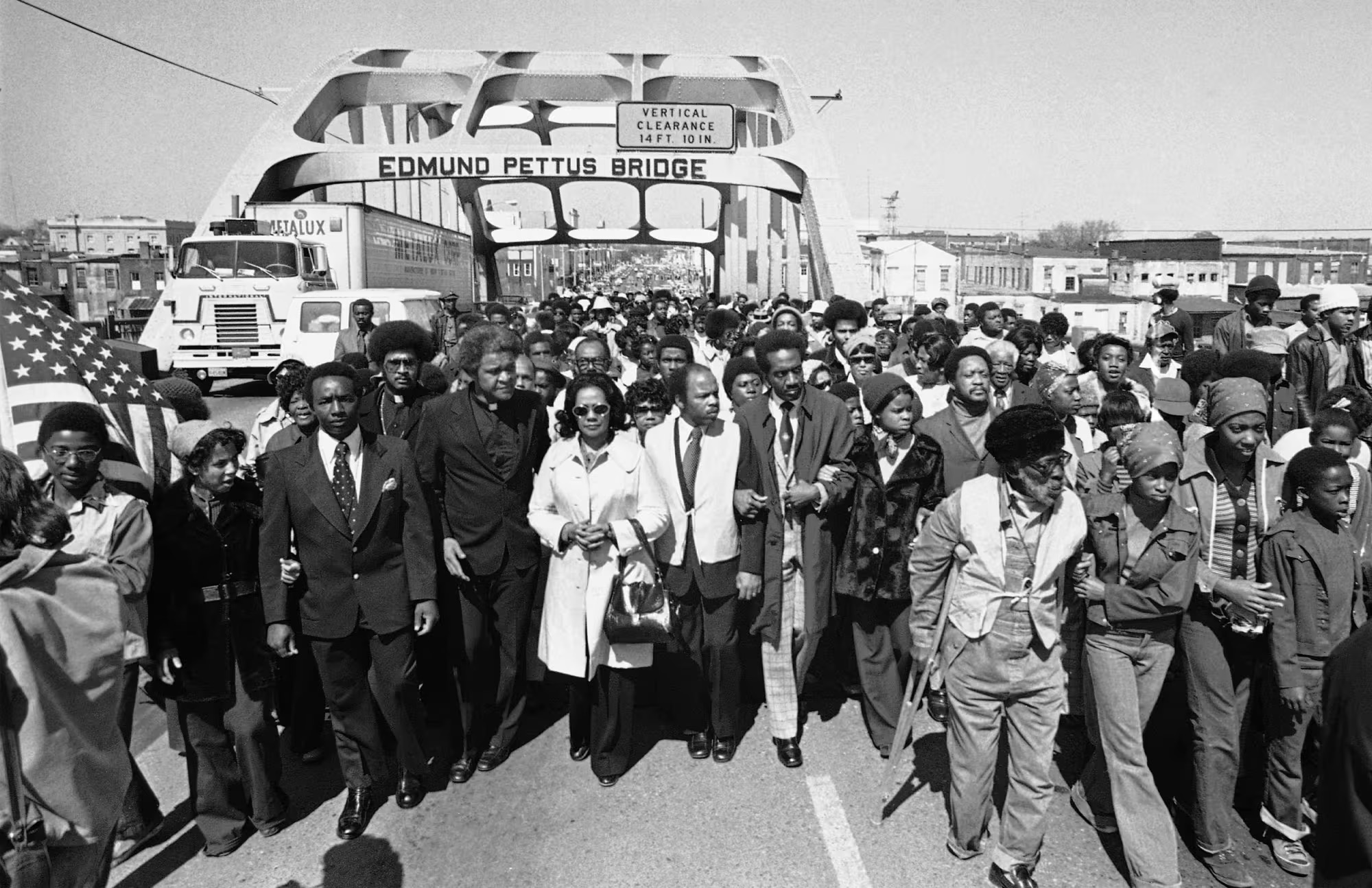 In March of 1965, nearly 600 African-American demonstrators crossed the Edmund Pettus Bridge as a first leg of what would have been a march from Selma to Montgomery, Alabama to protest the murder of Jimmie Lee Jackson, who was shot and killed by an Alabama state trooper while trying to shield his mother from ongoing beatings by the state troopers as punishment for exercising their right to protest. The demonstrators were met on the Bridge by more than 50 state troopers, horses, and possemen. When they refused to turn back, they were brutally beaten, gassed, and whipped.