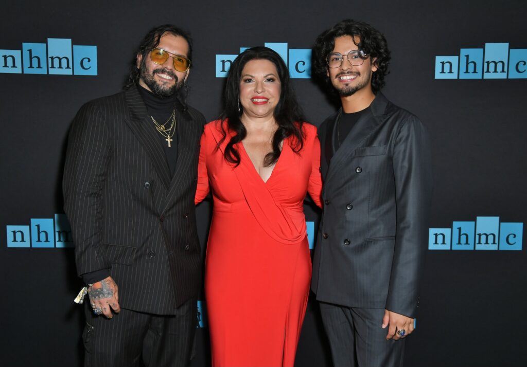 NHMC Impact Award Gala 2022 - From Left to Right: Director, Ángel Manuel Soto, Brenda Castillo, NHMC President & CEO, and Actor & NHMC Impact Awards Honoree, Xolo Maridueña