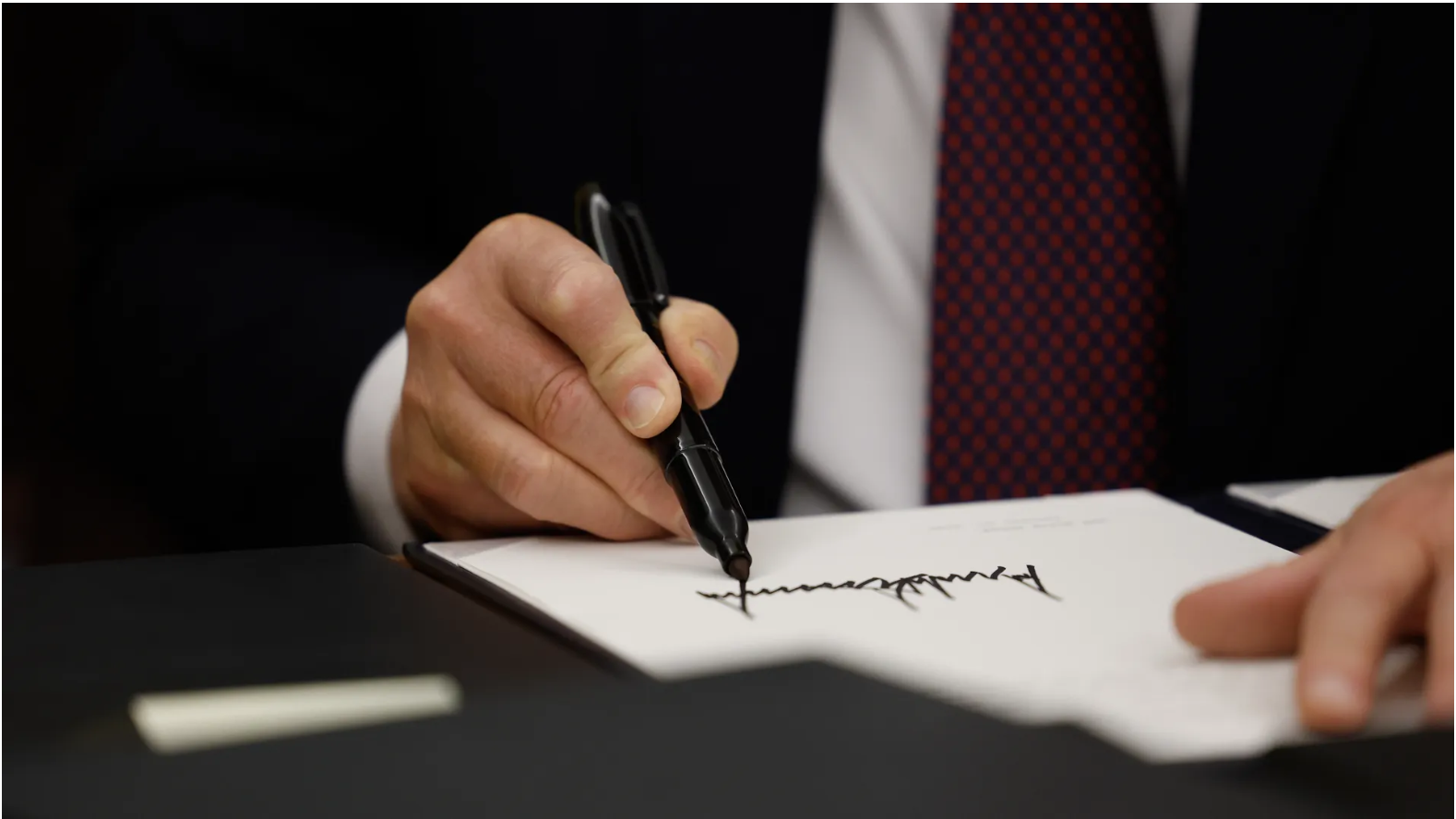 Pres. Trump signs an executive order. Photo: Anna Moneymaker/Getty Images